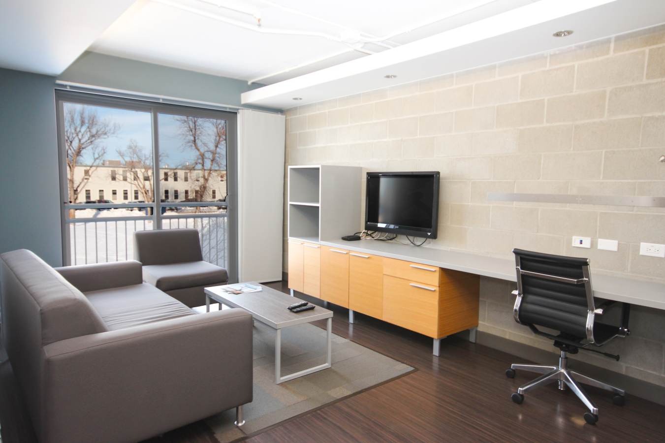 Bawat kuwarto ay may kitchen area na may stovetop, convection microwave, at basic cookware. Mayroong dining at living area at pribadong kuwartong may queen bed. Nagtatampok ang Barker Suites ng common lounge sa pangunahing palapag na may kitchen area at patio, pati na rin ng mas maliliit na meeting room sa itaas na palapag, na perpekto para sa mga group function. Mayroong laundry room sa bawat palapag na maaaring gamitin ng mga bisita.