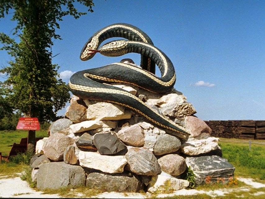 Ito ang setting kung saan lumilitaw ang libu-libong mga red-sided garter snake mula sa limestone sinkholes at nagsasalsal sa isang ritwal ng pagsasama sa unang dalawang linggo ng Mayo. Bumalik sila sa kanilang mga lungga sa unang bahagi ng Setyembre na nananatiling aktibo at nakikita hanggang sa mapuwersa sila sa ilalim ng lupa ng malamig na panahon. Ang mga update sa aktibidad ng ahas ay matatagpuan dito. http://www.naturenorth.com/spring/creature/garter/Narcisse_Snake_Dens.html