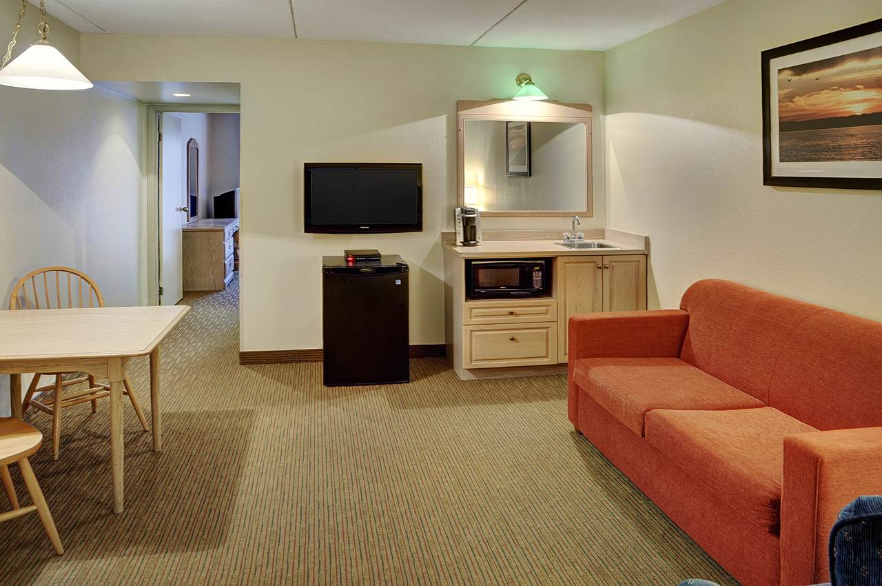 Bawat isa sa mga maluluwag na kuwartong pambisita at suite ay nagtatampok ng kaakit-akit na palamuti na nagpapadama sa mga bisita na nasa tahanan. Kasama sa mga guest room ang mga hairdryer, clock radio, in-room coffee maker na may kape, 32″ flat panel TV, air conditioning, hair dryer, at refrigerator na walang laman para sa personal na paggamit.