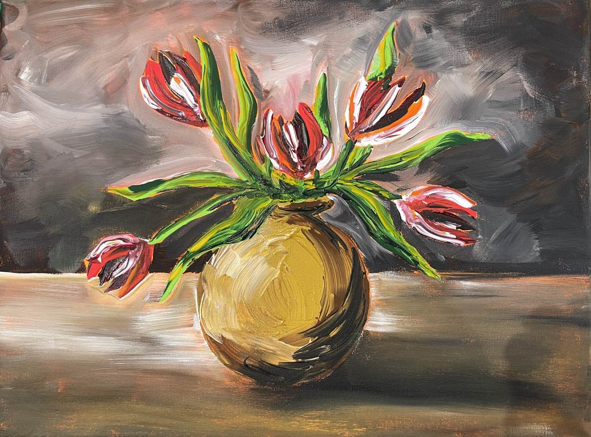 Ipagdiwang ang kagandahan ng tagsibol ngayong mahabang weekend ng Mayo gamit ang isang matingkad na workshop sa pagpipinta ng acrylic tulips, na perpekto para sa lahat ng antas ng kasanayan. Gagabayan ka nang sunud-sunod sa paglikha ng isang matapang at makahulugang komposisyon ng bulaklak habang natututo ng mga pangunahing pamamaraan ng acrylic tulad ng layering, underpainting, at brushwork. Galugarin ang liwanag at tekstura habang nabubuhay ang iyong mga tulip sa canvas. Ang nakakarelaks at nakakaengganyong klase na ito ay nag-aalok ng maraming espasyo para sa personal na estilo at pagkamalikhain. Umalis na may natapos na pagpipinta at ang kumpiyansa na patuloy na lumikha sa bahay.