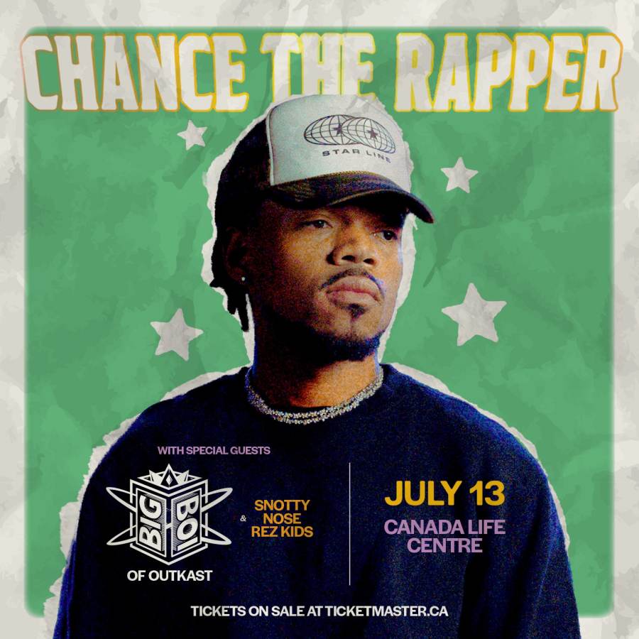 Si Chance The Rapper, isang premyadong artista, visionary, at community builder mula sa Chicago, na ang karera ay nagbigay-kahulugan muli sa kahulugan ng pagiging malaya sa industriya ng musika, ay darating sa Canada Life Centre ng Winnipeg sa Hulyo 13 kasama sina Big Boi mula sa OutKast at Snotty Nose Rez Kids. Isang trailblazer mula pa sa simula, gumawa ng kasaysayan si Chance The Rapper bilang unang independent artist na nanalo ng Grammy para sa kanyang kinikilalang mixtape na Coloring Book, kung saan nakakuha siya ng tatlong parangal, kabilang ang Best New Artist at Best Rap Album.