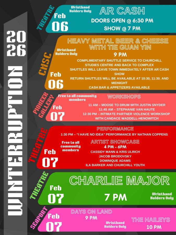Maglakbay sakay ng tren mula Winnipeg o lumipad pahilaga at isawsaw ang iyong sarili sa isang pagdiriwang na mabilis na nakikilala bilang signature winter music event ng Northern Manitoba. Sa isang senaryo kung saan gumagala ang mga polar bear, nagtitipon ang mga beluga whale, at sumasayaw ang northern lights sa itaas, pinagsasama ng Winterruption ang mga world-class na pagtatanghal at tunay na kulturang hilaga.