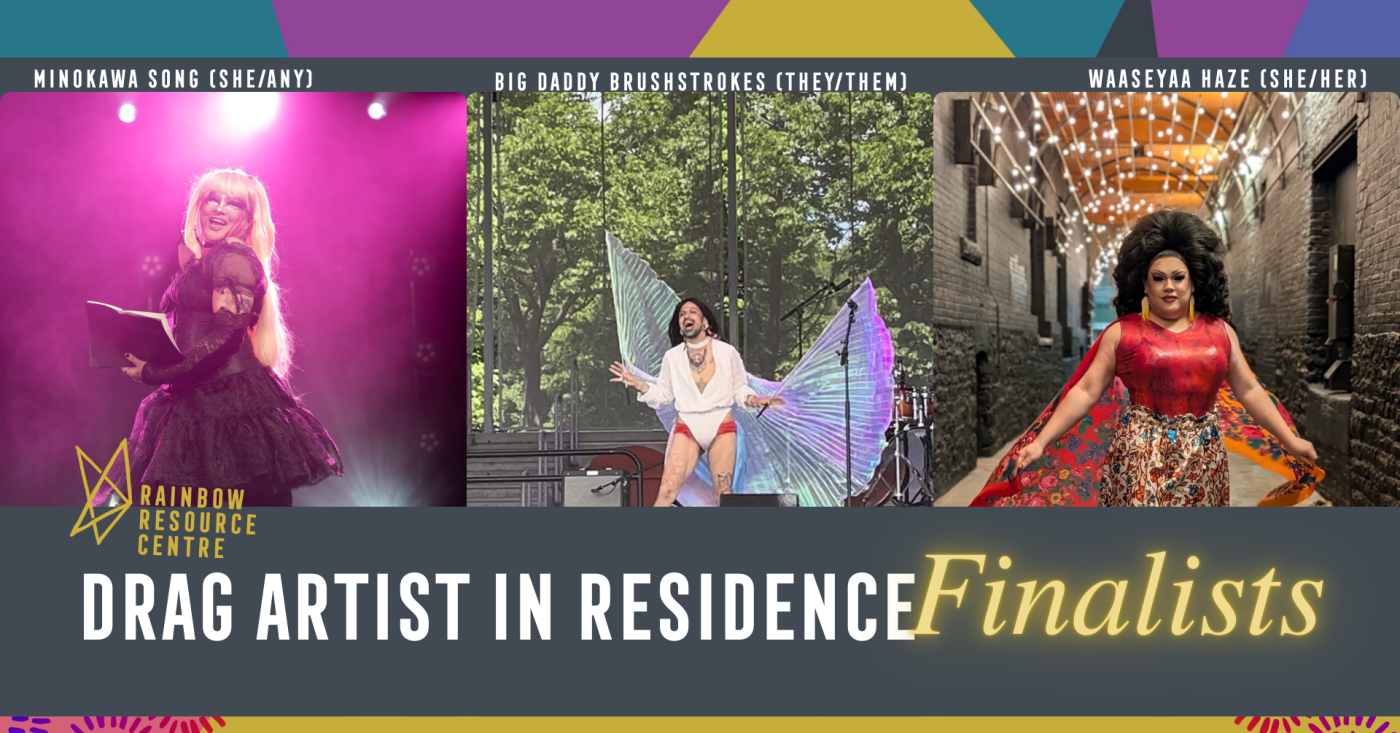Halina't alamin kung bakit ang tatlong artistang ito ang napili ng isang panel ng kanilang mga kasamahan upang kumatawan sa Rainbow Resource Centre para sa 2026. Ang mananalo, na pipiliin ng aming panel ng mga hurado mula sa Drag Community ng Winnipeg, ay tatanggap ng $2,000 na stipend, habang ang dalawang runner-up sa shortlist ay tatanggap ng tig-$500 na honorarium.