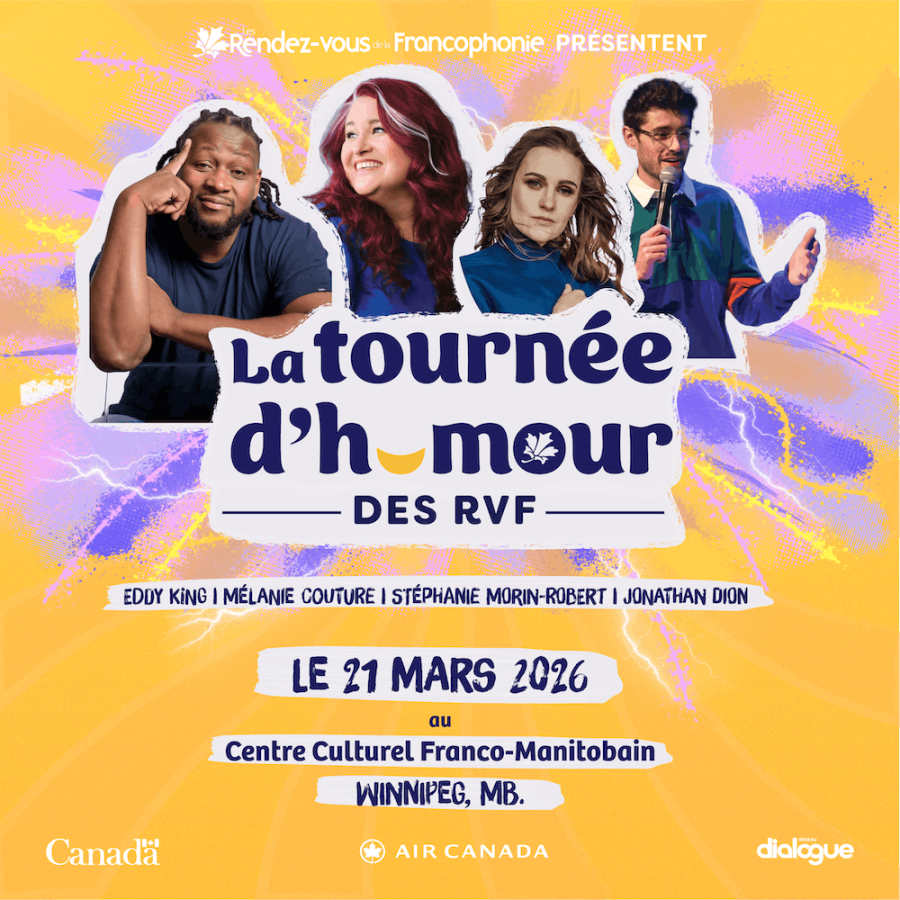Bilang pagdiriwang ng ika-13 edisyon ng RVF comedy tour, ikinalulugod ng Réseau Dialogue na ipahayag ang pagbabalik ng pan-Canadian tour na ito na nagtatampok ng mga propesyonal na komedyante sa mga komunidad ng minoryang Pranses.
