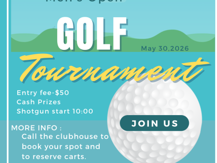 Experience first class golf in a scenic country setting at the Men’s Open Golf Tournament on