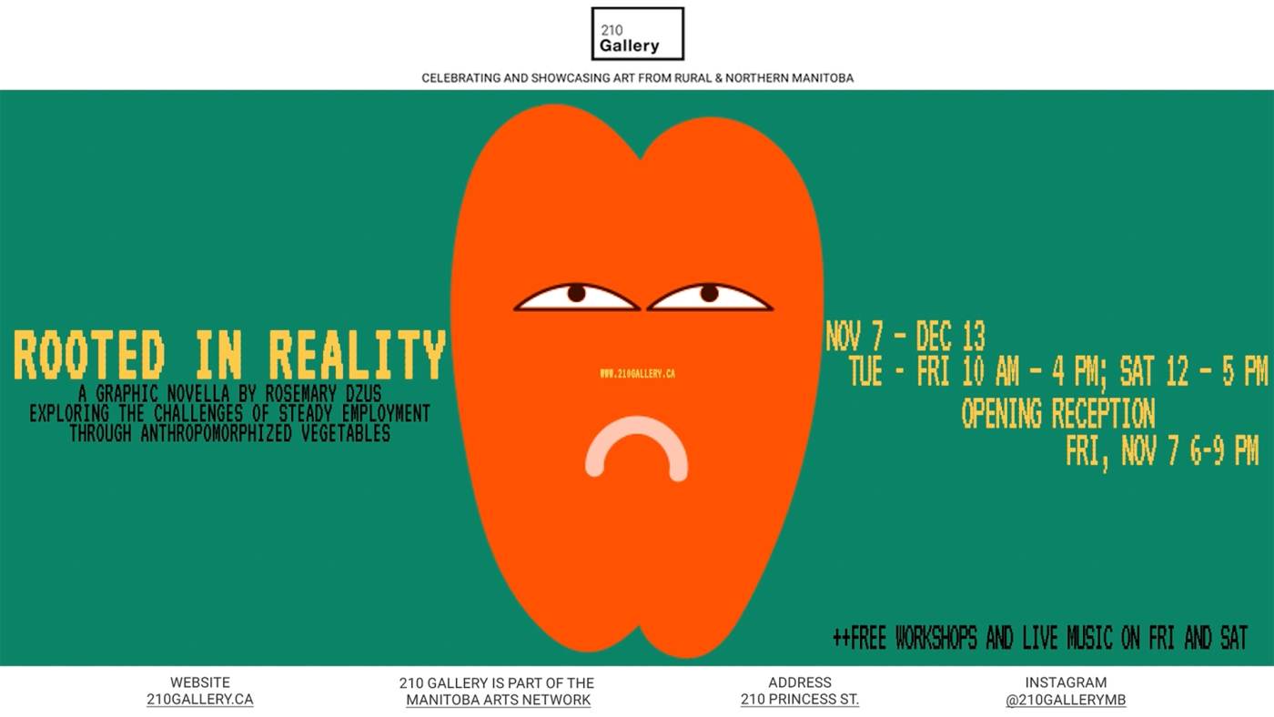 Ano ang hitsura ng walang katiyakan na trabaho—hindi lamang sa mga headline o istatistika, ngunit sa pang-araw-araw na mga taong nabubuhay dito? Ang Rooted in Reality ay isang graphic novella-based na eksibisyon ni Rosemary Dzus na naglalarawan sa karanasang ito sa pamamagitan ng hindi inaasahang cast ng mga karakter: mga anthropomorphized na gulay.