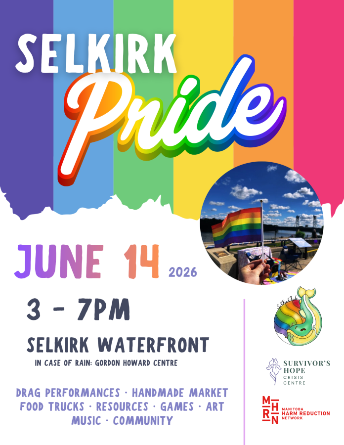 Ipinagmamalaki ng Survivor's Hope Crisis Centre at ng Selkirk Manitoba Harm Reduction Network na ihandog ang SELKIRK PRIDE 2026 🙌🏼!