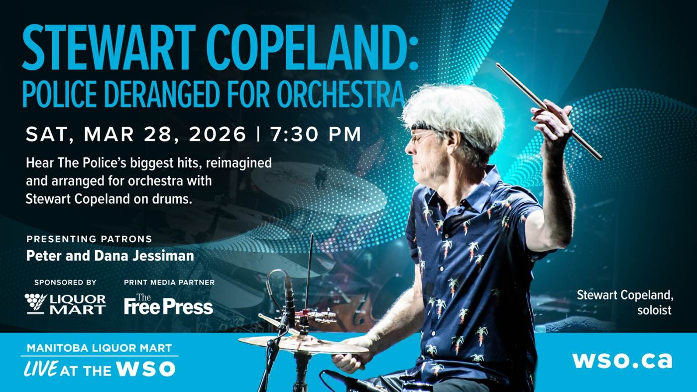 Kasama ni Stewart Copeland ang super fan na Music Director na si Daniel Raiskin at ang Winnipeg Symphony Orchestra, kasama ang mga mang-aawit at gitara, sa isang masiglang orchestral evening na nakatuon sa epikong pag-angat ng karera ng iconic na musikero — kasama si Stewart mismo sa drums!