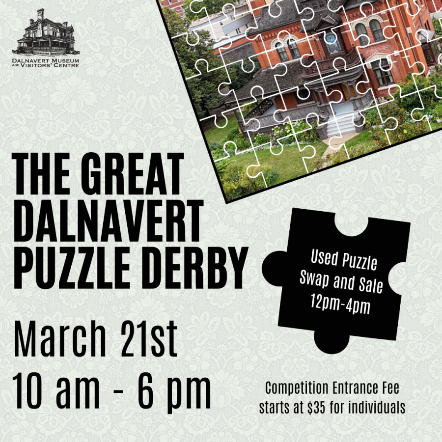 Limitado ang mga espasyo. Inaasahan namin ang pagtanggap sa komunidad ng puzzle ng Winnipeg para sa isang buong araw ng palakaibigang kompetisyon at kasiyahan sa Dalnavert Museum! Ang mga nalikom mula sa Great Dalnavert Puzzle Derby ay sumusuporta sa patuloy na pangangalaga at programa sa Dalnavert Museum sa downtown Winnipeg.