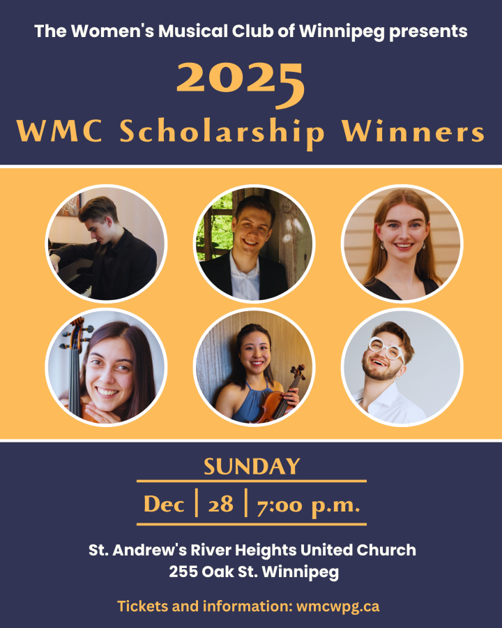 Itinatampok sa konsiyerto na ito ang mga nanalo sa Kumpetisyon ng Scholarship ng WMC na ginaganap taun-taon sa Mayo. Ang anim na scholarship ay may kabuuang $11,500, at inaalok sa mga naghahangad na Manitoban instrumentalists at vocalist para isulong ang kanilang musical training.